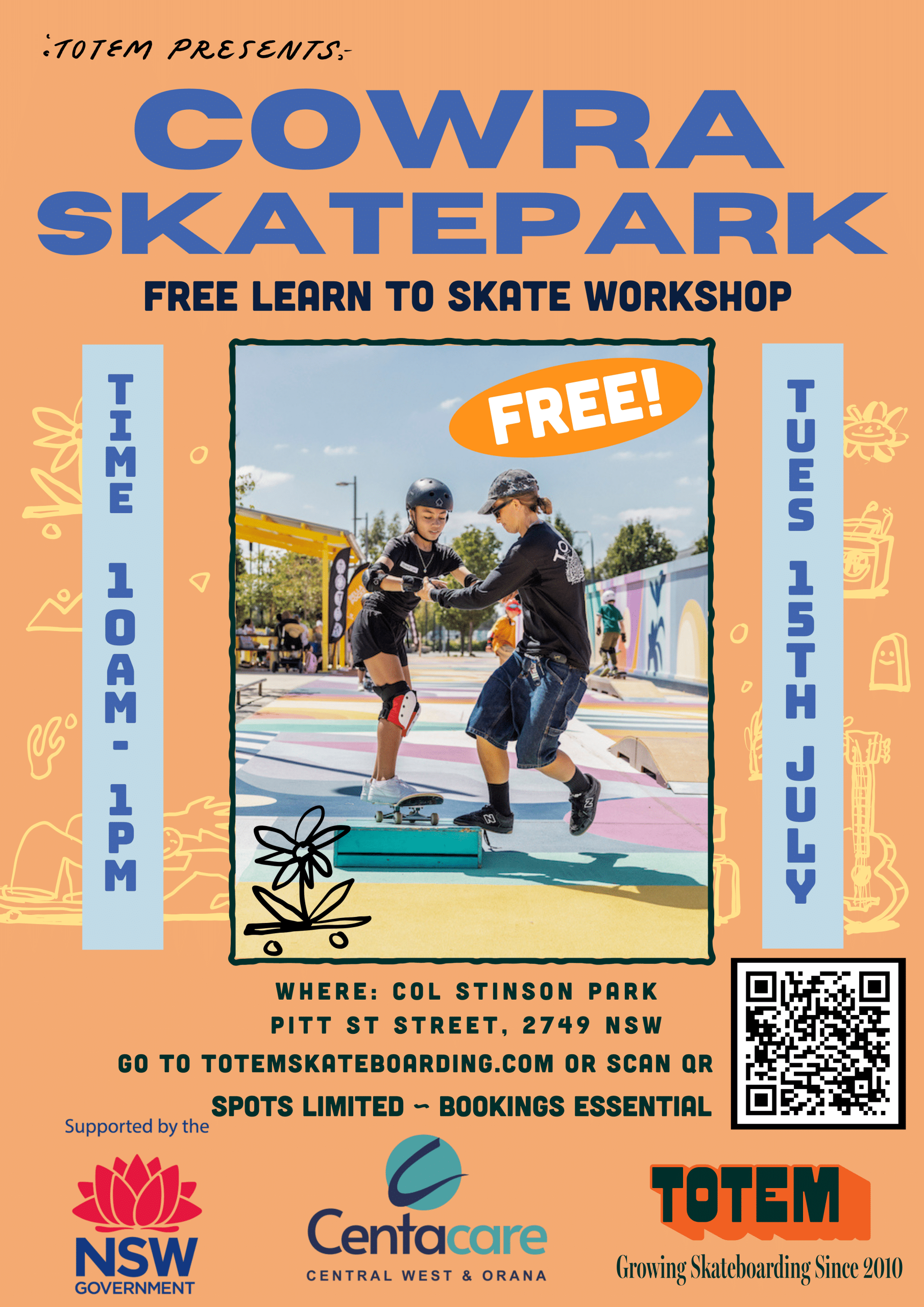 Free Community Skate Workshop in Cowra this July school holidays. Centacare Central West & Orana is hosting FREE Community Skate Workshop in Cowra onWednesday 15th July from at Cowra Skatepark, Cowra Peace Precinct, Len Whiteley Dr & Binni CreekRd, Cowra NSW 2794. Registrations are essential. The free skate workshops will be run by experienced staff […]